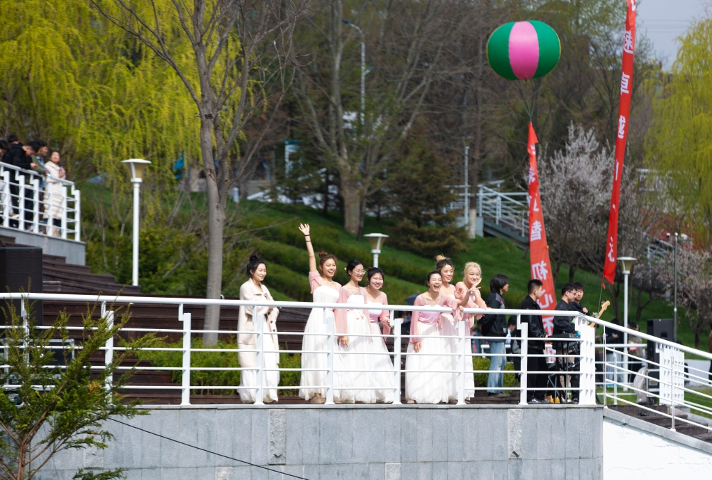 在落成仪式前,凌水湖上上演“连理·青春”主题快闪。阿卡贝拉合唱团、汉服社、大工力量电声乐团、德惠武术协会等学生社团的同学们,在粼粼波光中绽放青春活力、展现青年力量,用多姿多彩的兴趣特长和艺术表演庆祝建校75周年。