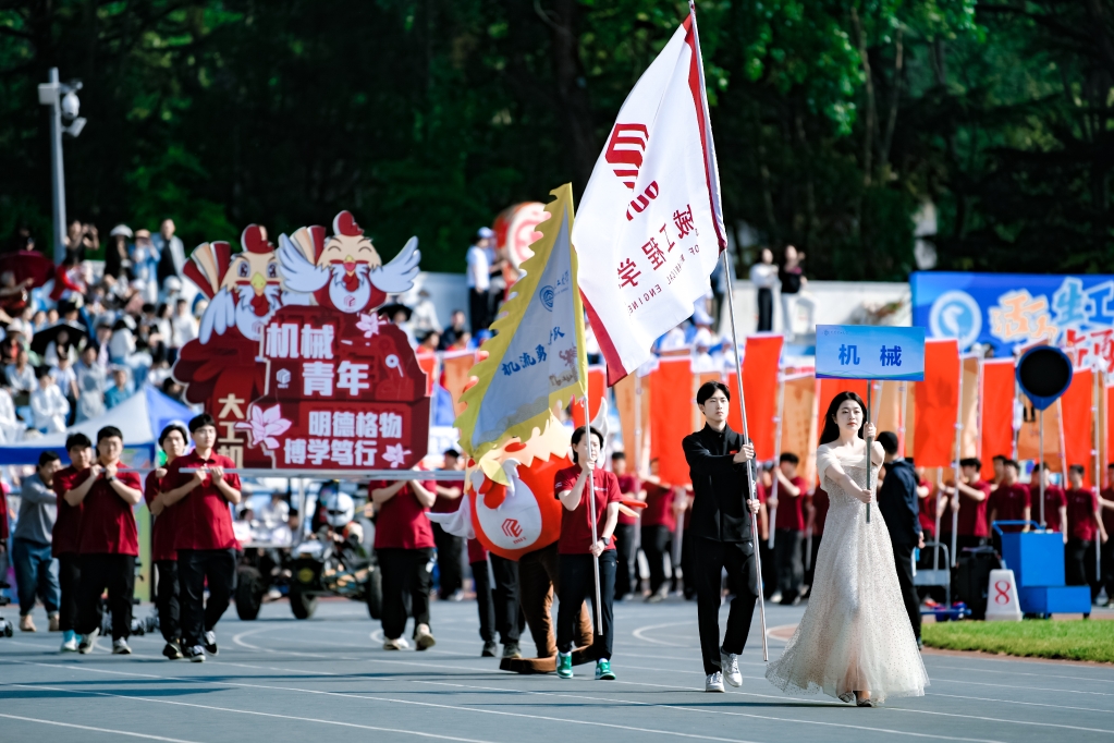 在激昂的乐曲声中,国旗护卫队、花束队、彩旗队、裁判员方阵、各学院师生方阵、教职工方阵依次入场。饱满的热情、飒爽的英姿,铿锵的步伐、响亮的口号,充分展现出大工人拼搏进取、矢志卓越的精神风貌。