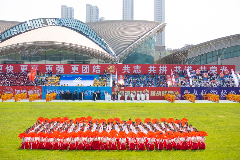张言军在致辞中指出,大工体育精神历久弥新,薪火相传。在大工建校75周年之际,希望大家把拼搏奋斗、自强不息的大工体育精神,转化为推动学校事业高速发展的强大动力,在青春的赛场上、在一流大学建设和强国建设的新征程上,加速奔跑、奔涌向前。