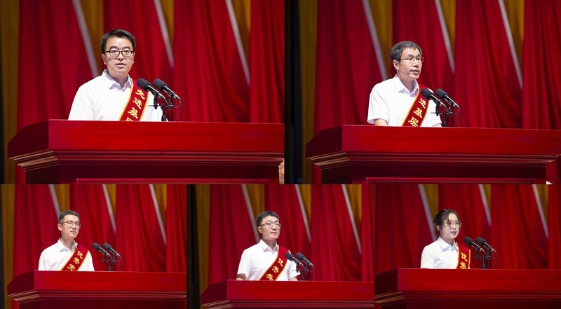 会上,受表彰的先进基层党组织代表化工学院党委书记张文珍、马克思主义学院党委书记郭驰,教师党员代表物理学院等离子体物理教工党支部书记桑超峰,学生党员代表机械工程学院博士生蔡昕彤、建设工程学院硕士生高晨曦先后作交流发言。