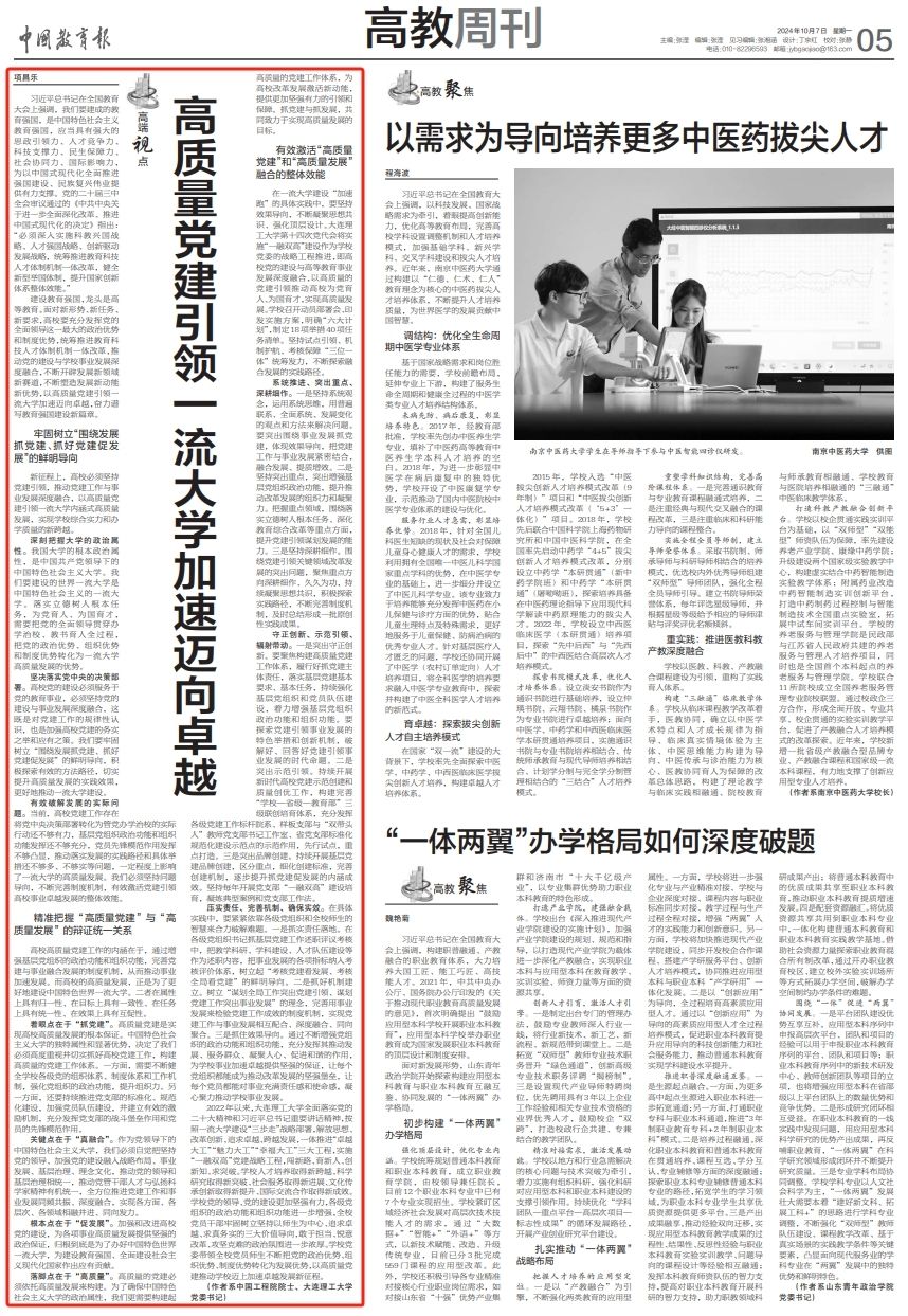 新征程上,高校必须坚持党建引领,推动党建工作与事业发展深度融合,以高质量党建引领一流大学内涵式高质量发展,实现学校综合实力和办学质量的新跨越。