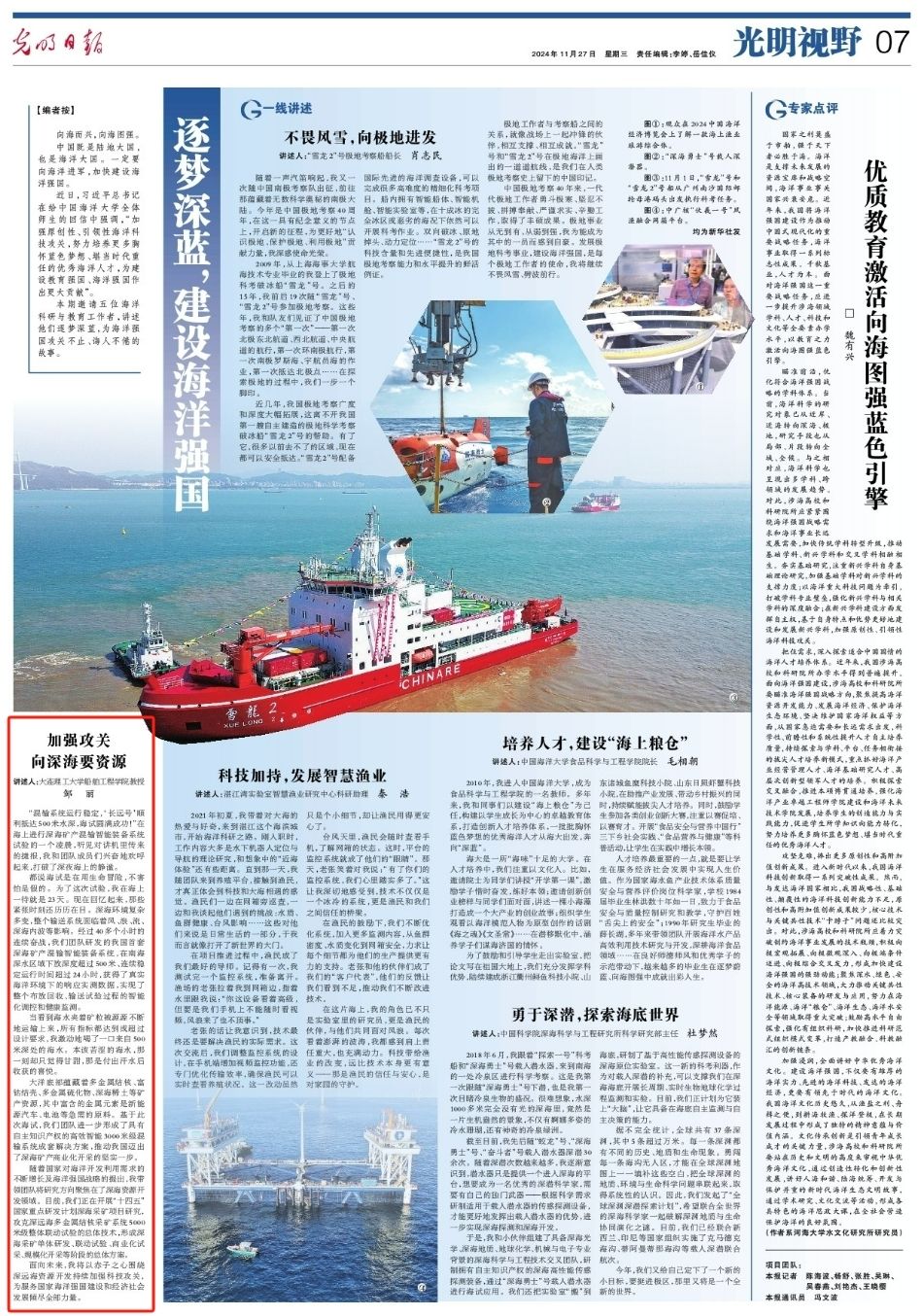 面向未来,我将以赤子之心围绕深远海资源开发持续加强科技攻关,为服务国家海洋强国建设和经济社会发展倾尽全部力量。