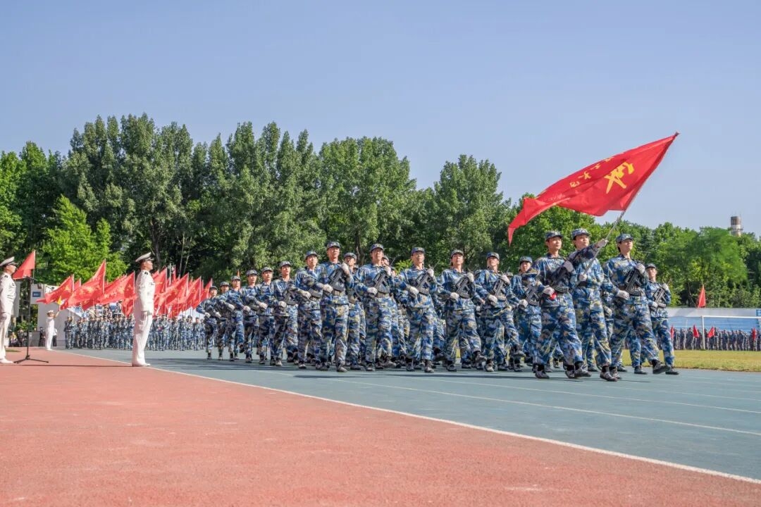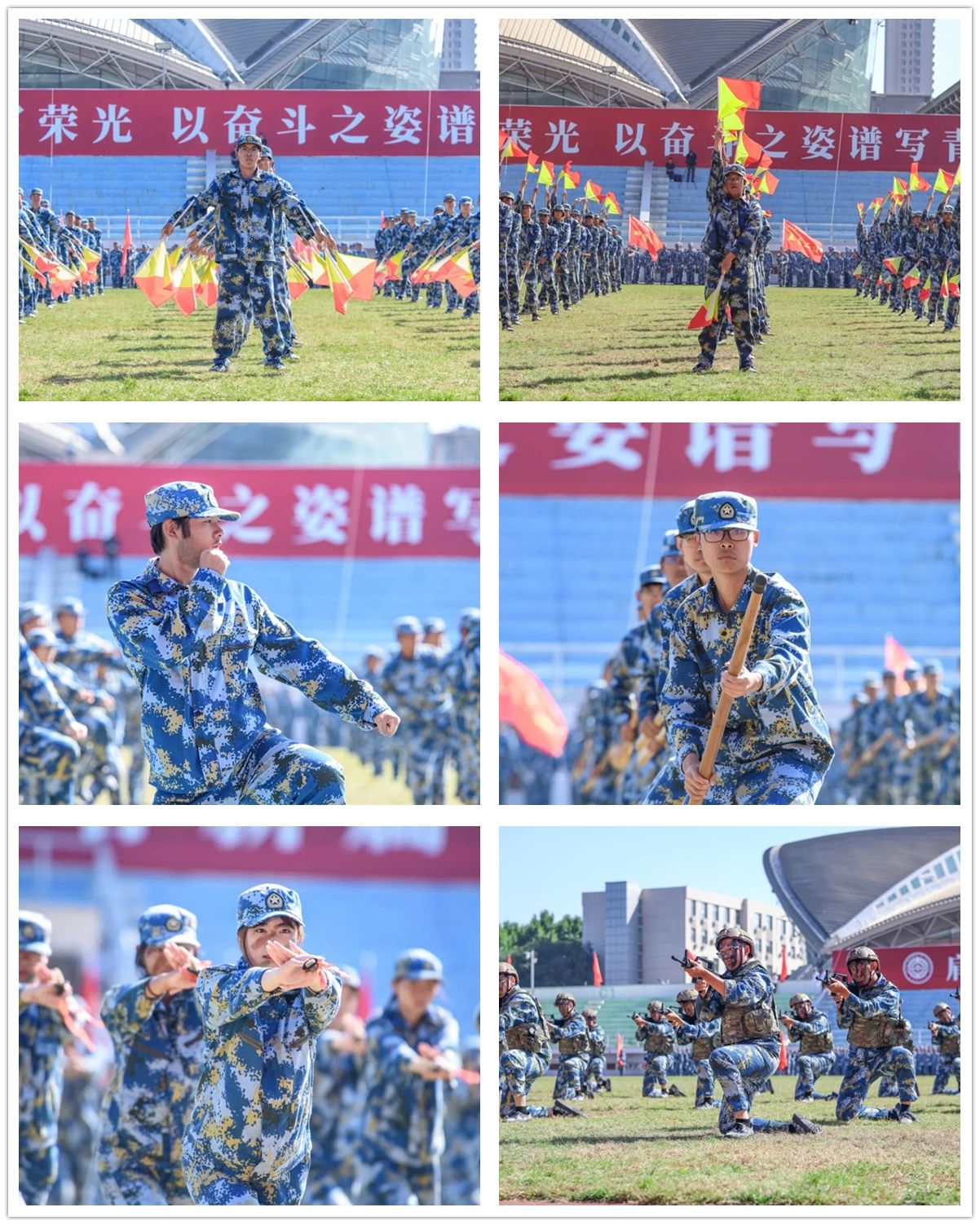 在庄严的升旗仪式中,汇报大会正式拉开帷幕。张言军接受大会总指挥陈金未的报告,发布指令“按计划进行”。以国旗护卫队预备队持枪方队为第一方阵的16支分列式方队,以整齐有力的步伐依次走过主席台接受检阅。在气势磅礴的战鼓声中,男子刺杀操、海军旗语、女子匕首操、战术训练、千人军体拳等军事表演项目精彩上演,展现出军训洗礼后的昂扬风貌。海军大连舰艇学院优秀官兵代表方阵压轴登场,整齐的队列歌咏和分列式展示,赢得在场师生们的阵阵欢呼和不息掌声。