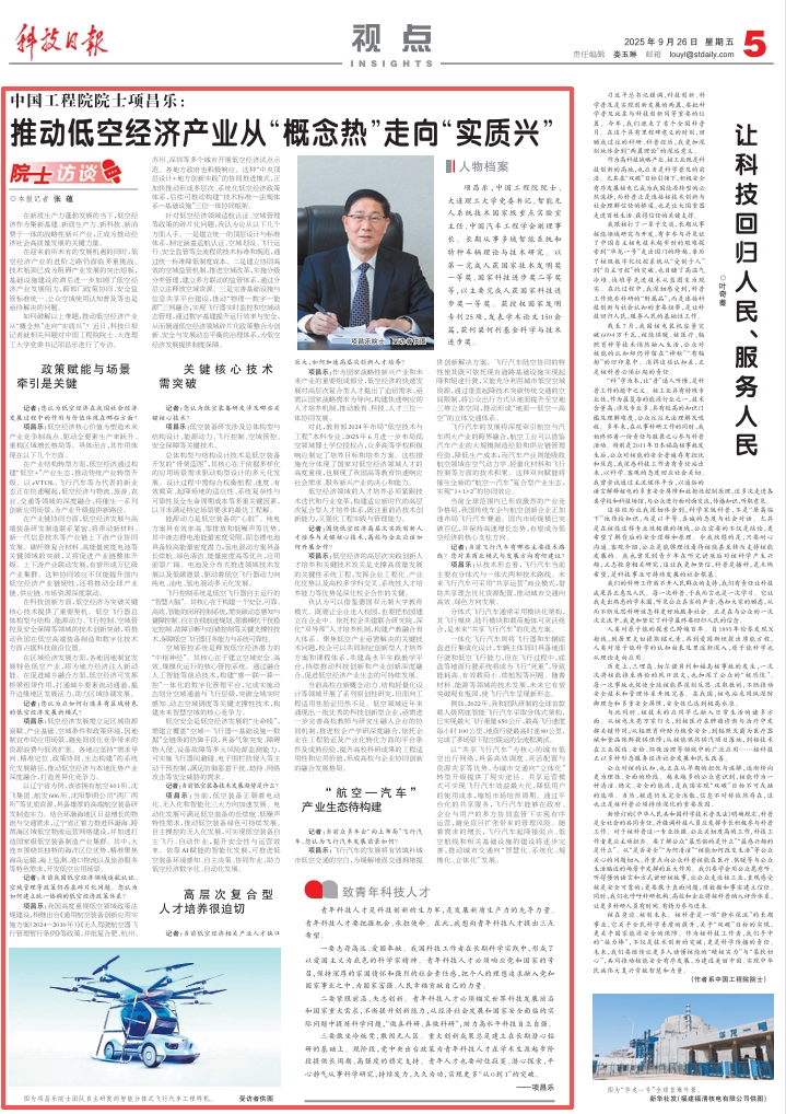 如何破解以上难题,推动低空经济产业从“概念热”走向“实质兴”?近日,科技日报记者就相关问题对中国工程院院士、大连理工大学党委书记项昌乐进行了专访。